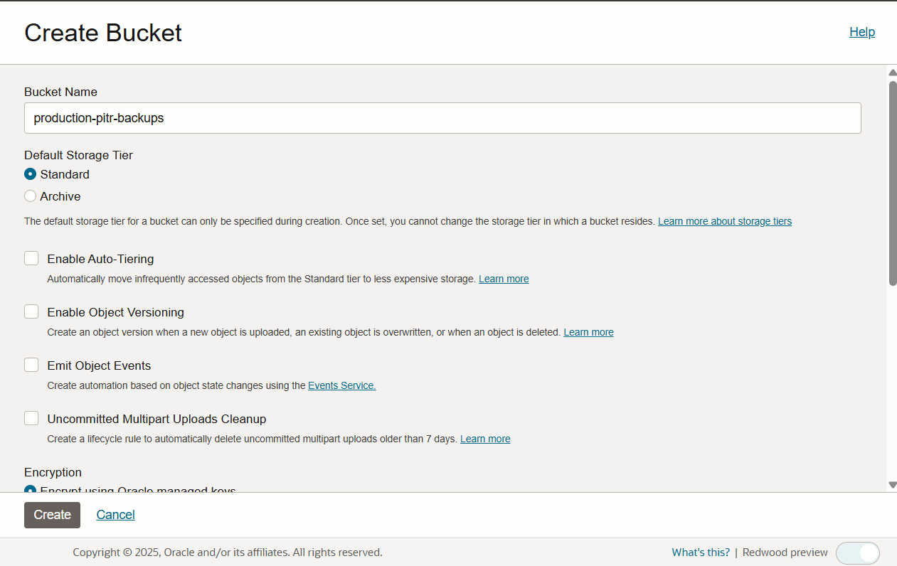 Create Object Storage Bucket
