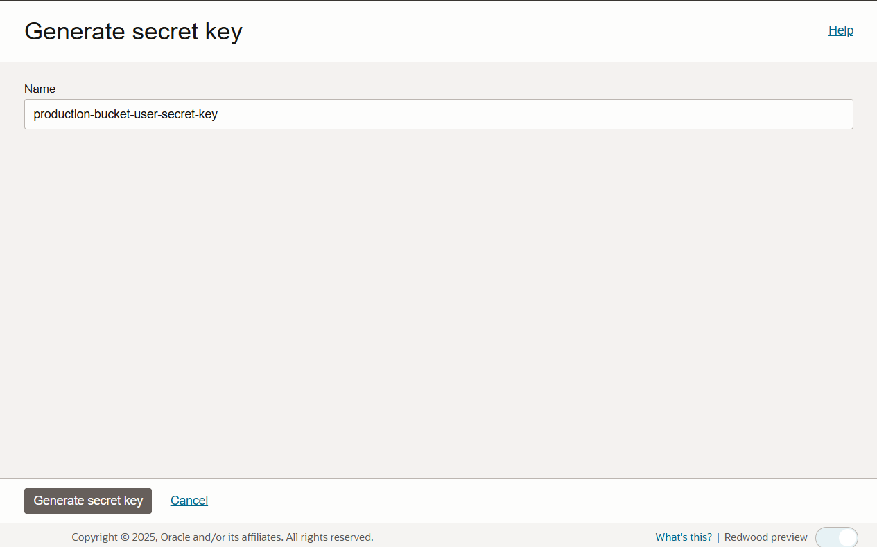 Fill in the name and click Generate secret key button.
