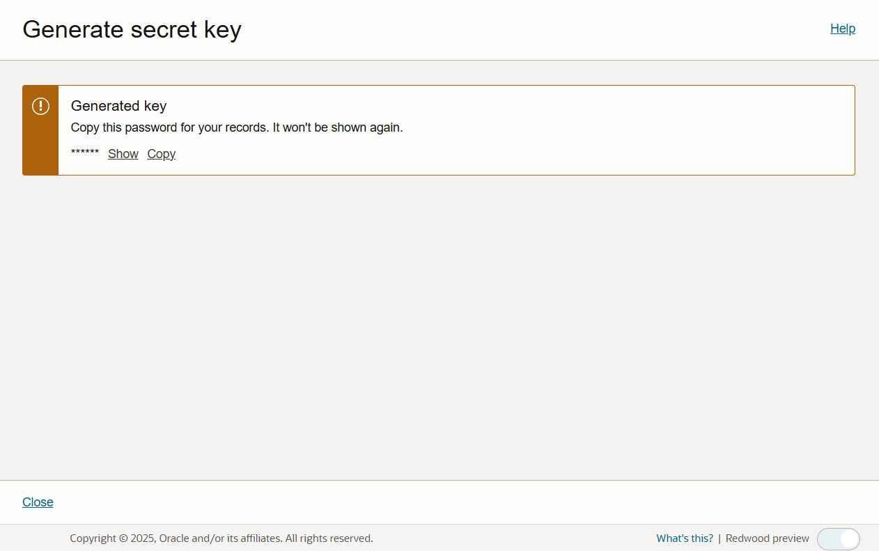 Copy the generated secret key and store it in a secure place.