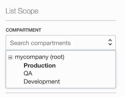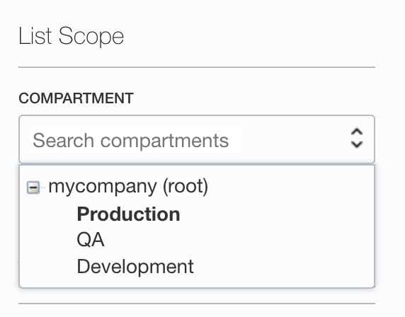 - Select your compartment under the List Scope section from the left bottom page.
