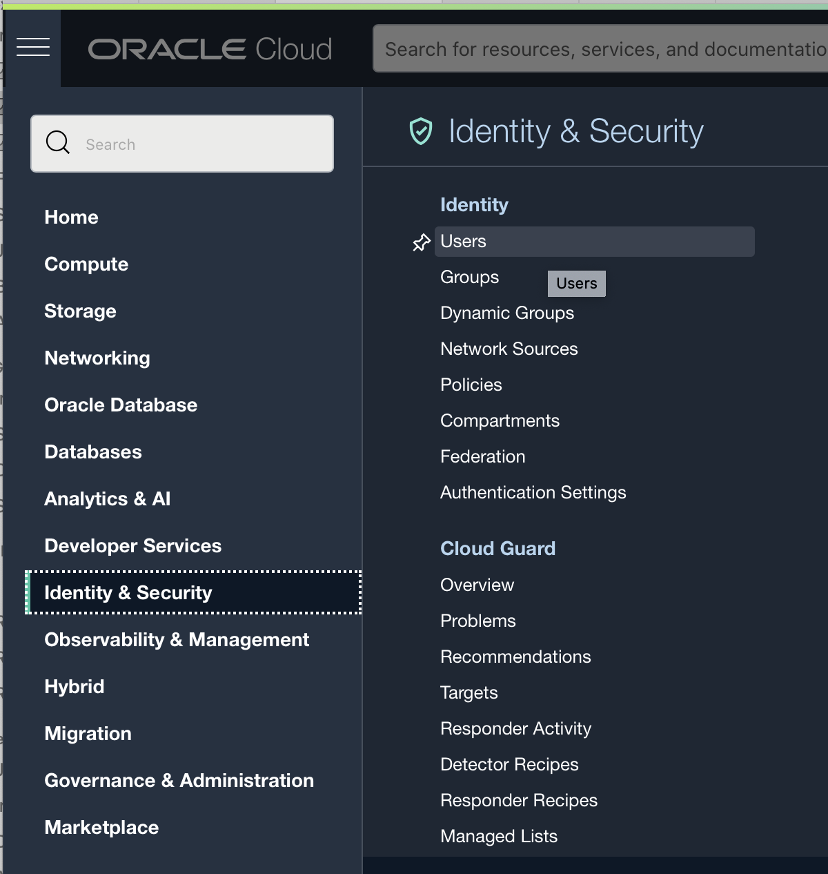 - Go to Identity & Security > Users page